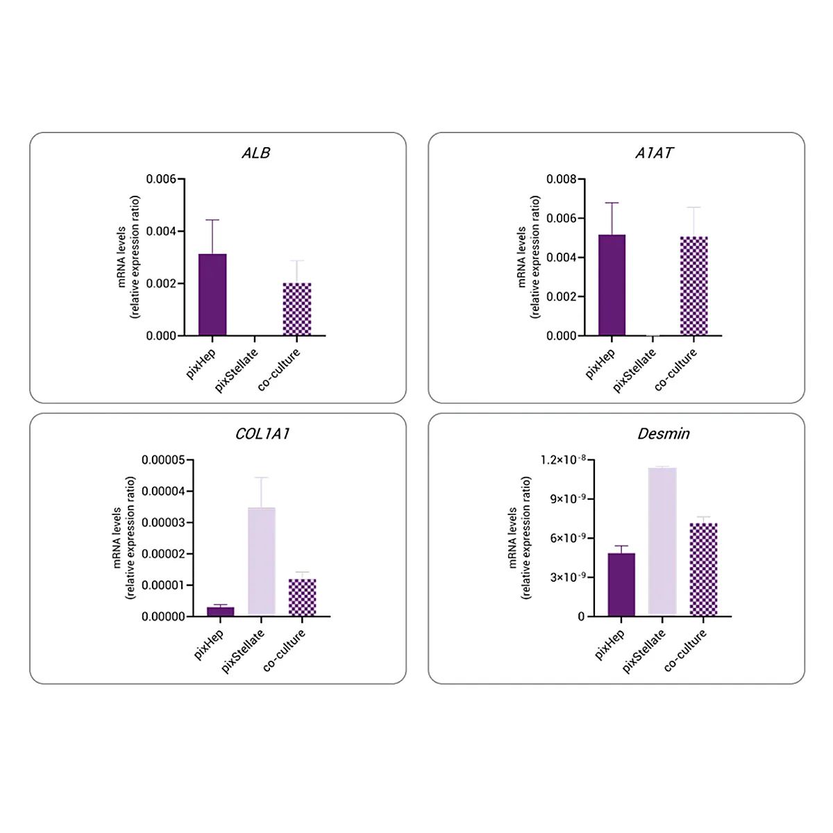 - pixHep (HEP-003, 1 × 10⁶ cells per cryopreserved vial) and pixStellate (HSC-003) optimized for advanced, donor matched co-culture studies (1 cryopreserved vial of each required