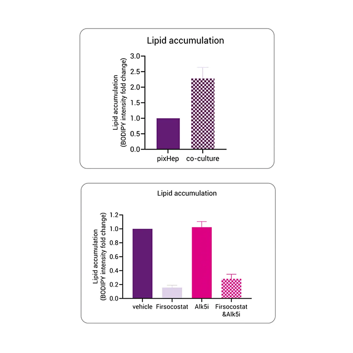 This model recreates the progression from MASLD to fibrotic MASH by combining lipid-loaded pixHep™ with activated pixStellate™ cells.