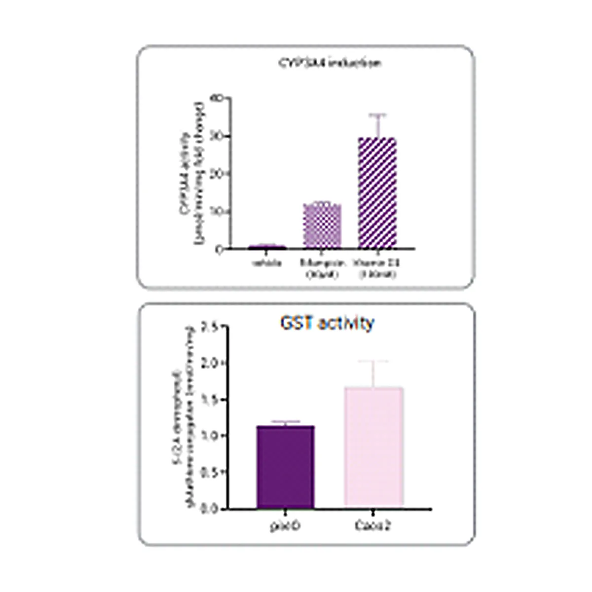 CYP3A4 induction by rifampicin/vitamin D3; MDR1 (ABCB1) efflux activity with verapamil sensitivity.